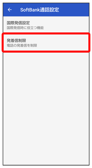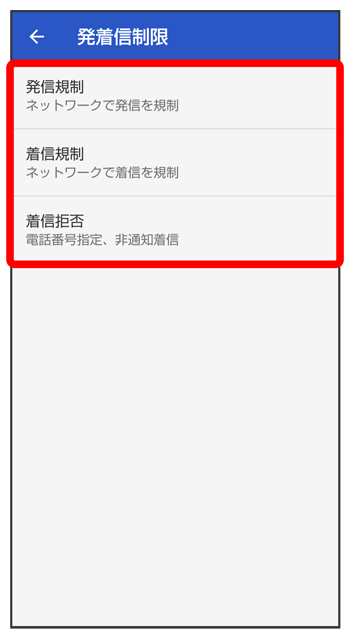 発着信制限画面で指定した電話番号からの着信を拒否する