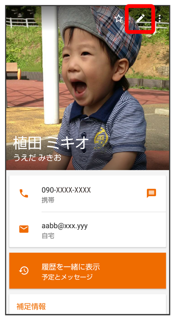 連絡先編集画面で登録する種別の- 「カスタム」を選択したときは、このあと種別名を入力と操作してください。
