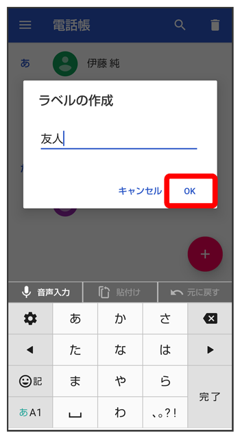 と操作して表示した連絡先画面では、ラベルの登録はできません。