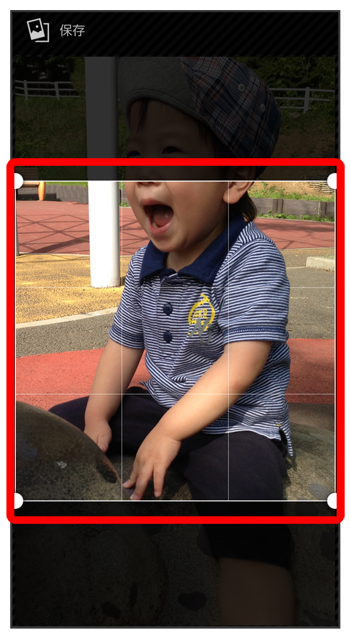 トリミング枠をドラッグして調節