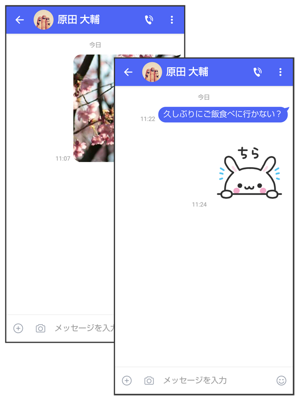 写真や動画はもちろん、スタンプや現在地の情報を送受信することもできます。