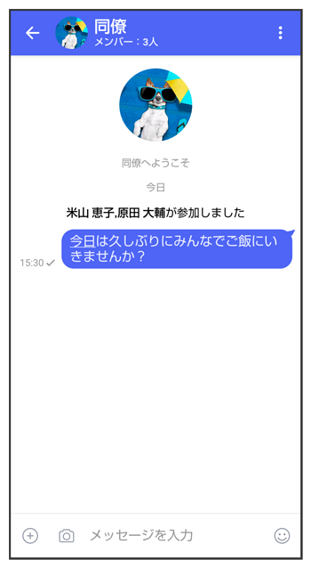 複数の相手とメッセージのやり取りができるグループメッセージ機能も利用できます。
