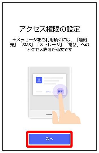 - をタップした場合は、SMS/S!メールのみの利用となり、+メッセージは利用できません。