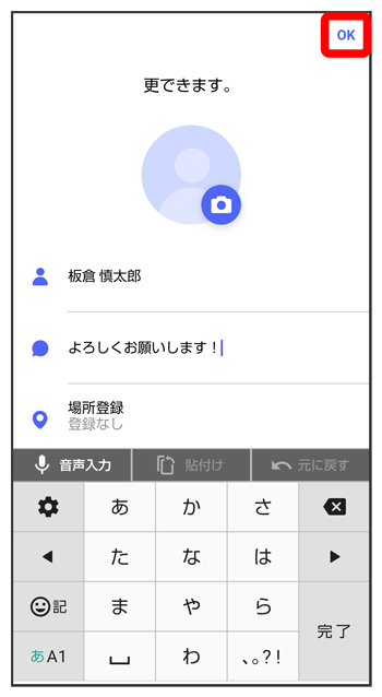 - 設定せずにをタップして、あとで設定することもできます。詳しくは「プロフィールを編集する」を参照してください。
