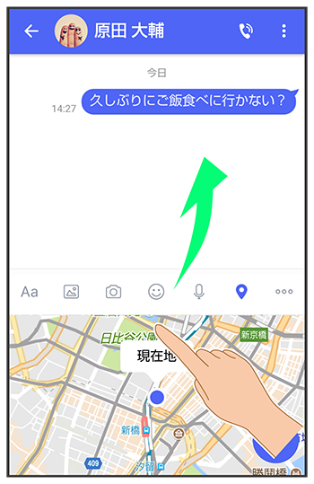 をタップすると位置情報が添付されたメッセージが送信されます。