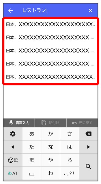 位置情報のキーワードを入力送りたい位置情報をタップ