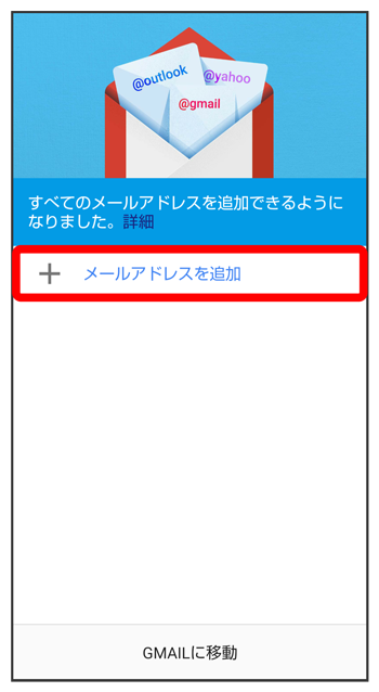 (Gmail)を起動すると、アカウント設定画面が表示され、設定操作を行うことができます。