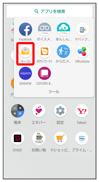 メール一覧画面が表示されます。