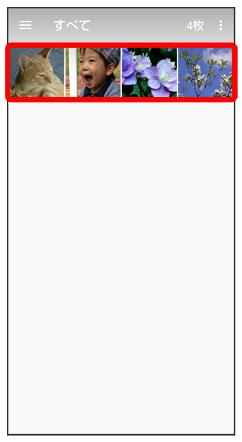 写真/動画一覧画面で対象の写真/動画をロングタッチ(