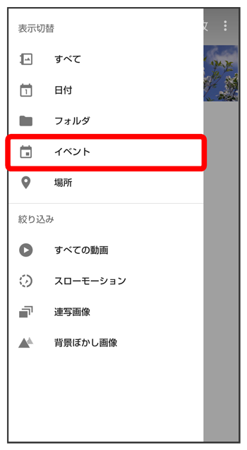 新規作成するイベントの写真/動画をタップ(