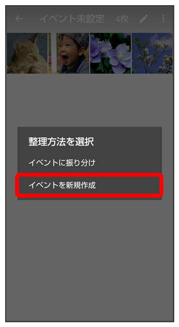 イベントを新規作成して、写真/動画を分類します。