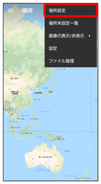 - このあと、フリック/ピンチで設定する場所の地図を表示します。