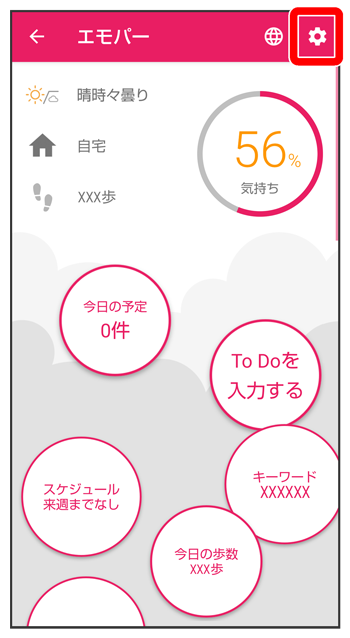 エモパー設定画面で話題にする内容をタップ- 話題にする内容をタップするたびに、有効(