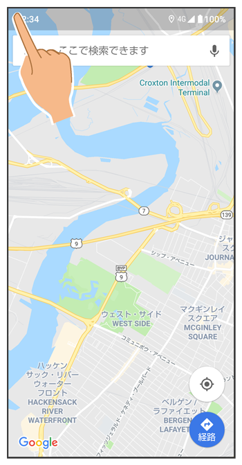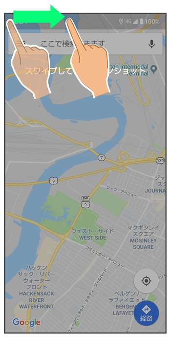 画面の左上(右上)の角に触れる
