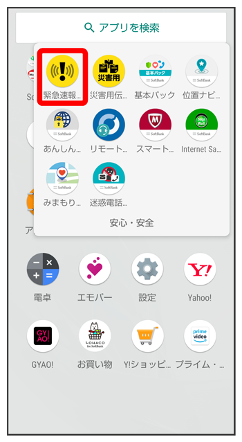 ホーム画面でお気に入りトレイを画面上部までドラッグ緊急速報メールを利用するかどうかを設定する