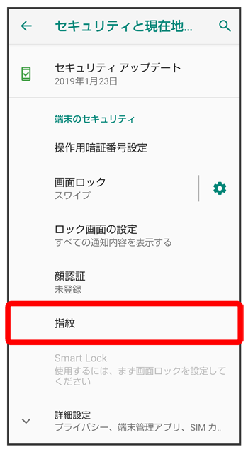 - 指紋認証ができないときの予備の画面ロック解除方法になります。