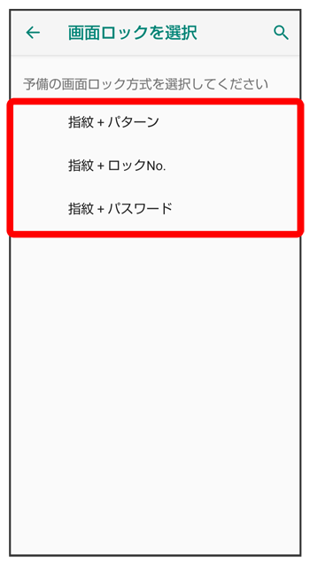 予備で設定した画面ロック解除用のパターン/ロックNo.(PIN)/パスワードはお忘れにならないようご注意ください。