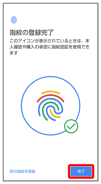 指紋の登録が完了します。