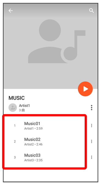 でを選んだときは、項目をタップする必要はありません。 - カテゴリによっては、項目をタップしたあとアルバム名などをタップする必要があります。