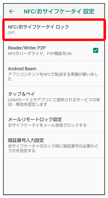 NFC/おサイフケータイ®設定画面で/操作用暗証番号を入力こちらで検索できます
