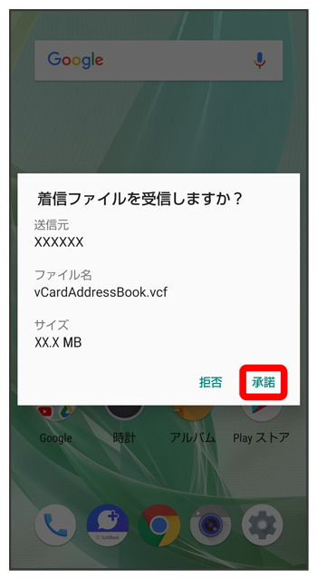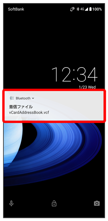 相手からデータの受信要求があると、ロック画面に通知が表示されます。次の操作を行うと、受信することができます。