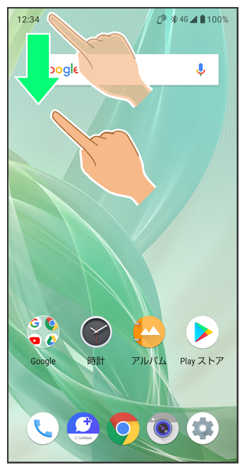 ホーム画面でお気に入りトレイを画面上部までドラッグ