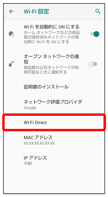 「ピアデバイス」欄に、近くにあるWi-Fi Direct規格対応機器が表示されます。