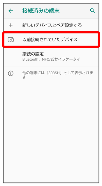 以前接続されていたデバイス画面で、ペア設定を解除する機器のこちらで検索できます