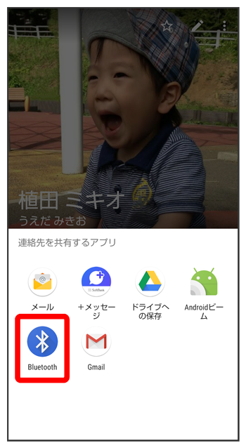 電話帳画面で連絡先をロングタッチ送信したい連絡先をタップ(