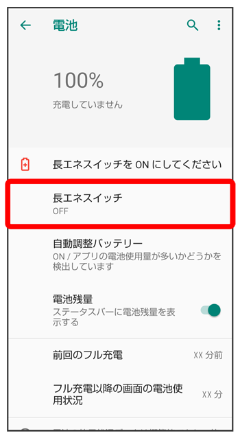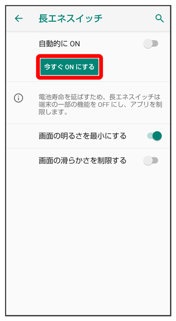 電池残量が設定した残量以下になったときに、長エネスイッチを自動的に有効にするかどうかを設定する