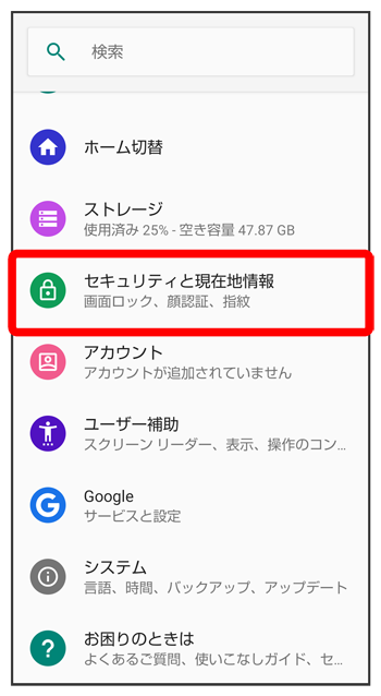 セキュリティと現在地情報画面が表示されます。