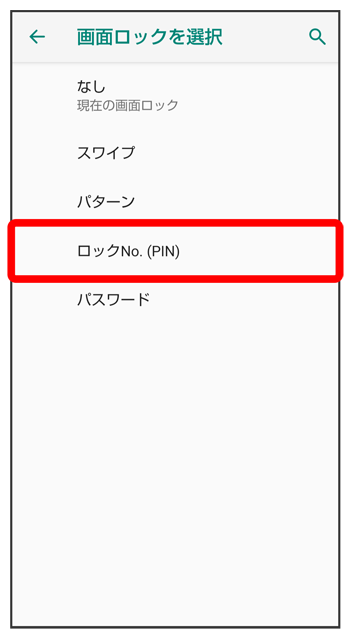 ロックNo.(PIN)で画面ロックを解除するように設定する
