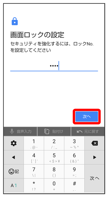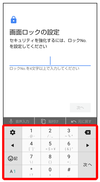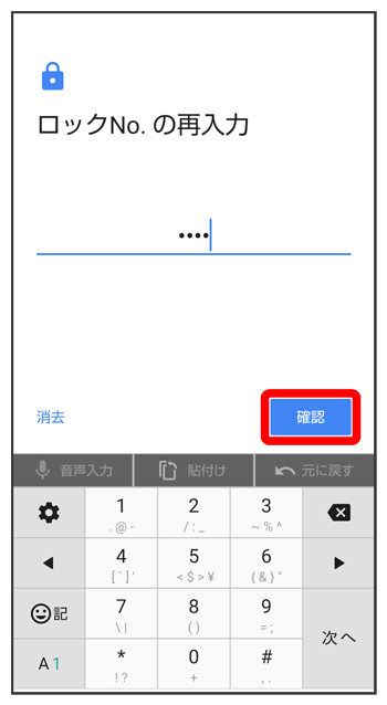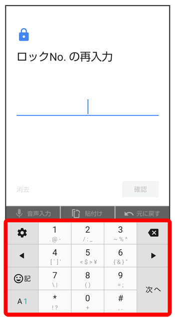 - をタップすると、入力したロックNo.(PIN)を消去できます。