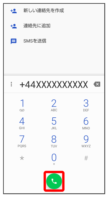 国番号のあとに相手の電話番号(先頭の「0」を除く)を入力