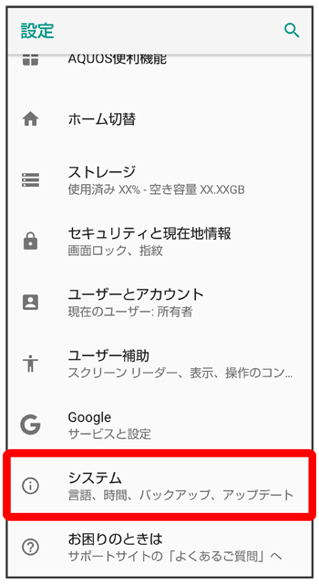 AndroidTM 8.0からAndroidTM 9へバージョンアップする