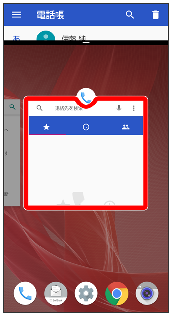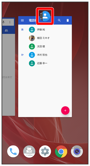 マルチウインドウ画面下に表示されたアプリの履歴一覧から、次に操作したいアプリをタップ