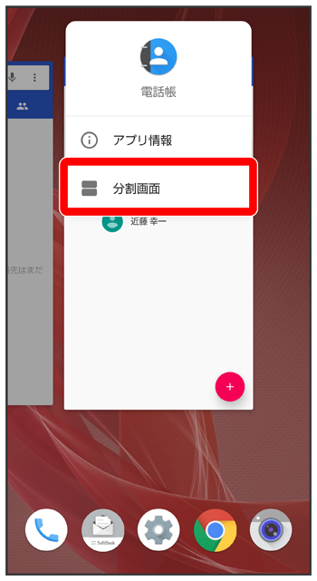 マルチウインドウ画面下にタップしたアプリが表示されます。