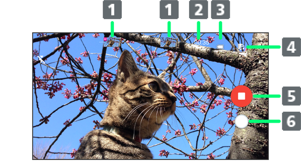 ショートムービーの作成が確定すると表示され、点滅します。 - 動画撮影停止