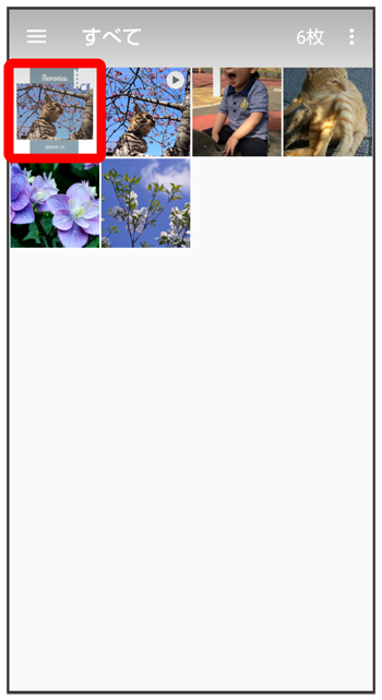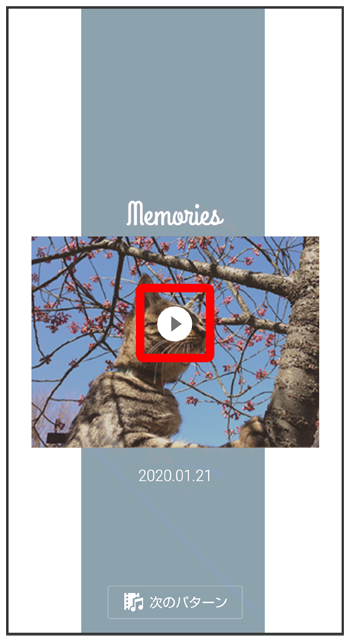 動画撮影時にAIライブストーリーによって作成された15秒程度のエフェクトやBGMが付いた動画(ショートムービー)を再生できます。ショートムービーのサムネイルは装飾された状態で表示されます。ただし、撮影時間の長さや被写体によっては作成されない場合があります。