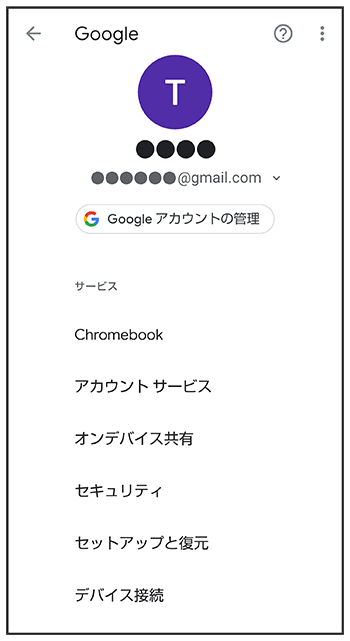 | Google アカウントの管理 | がに変更されます。 |