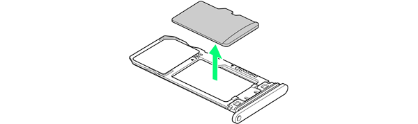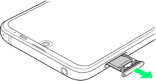 - ディスプレイを上にして、カードトレイを引き出してください。ディスプレイを下にしたり、本機を立てた状態でカードトレイを引き出すと、SIMカードやSDカードがカードトレイから外れ、紛失する可能性があります。