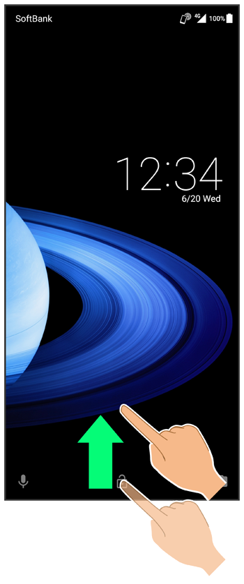 を上にフリックしたときは、このあとパターン/ロックNo./パスワードを入力してロックを解除する操作が必要です。