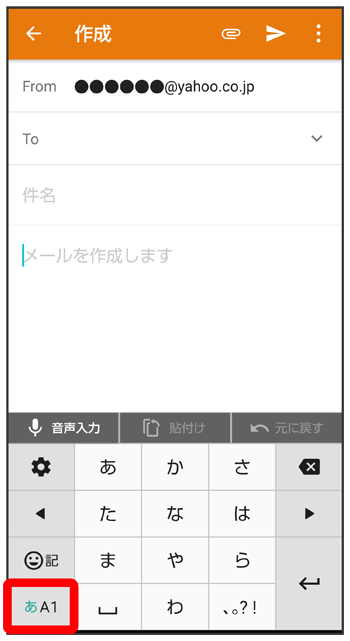 をタップするたびに、「半角英字入力」→「半角数字入力」→「ひらがな漢字入力」の順に切り替わります。右にフリックすると、逆順に切り替わります。