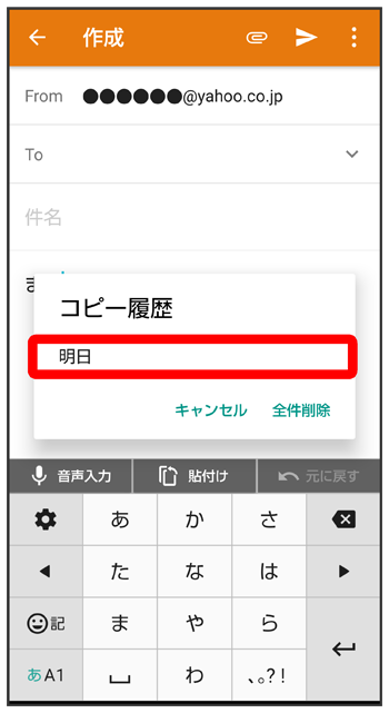 貼り付ける文字をタップ