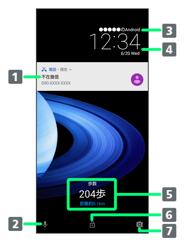 ロック画面は、電源を入れたときや、画面消灯(画面ロック)時に電源キーを押したときに表示される、本機への入口となる画面です。