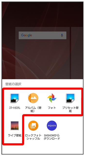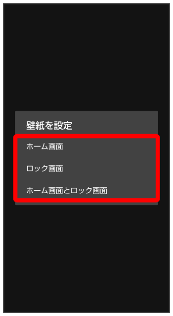 - をタップすると、ホーム画面のみ壁紙を設定できます。をタップすると、ホーム画面と同じ壁紙をロック画面にも設定できます。