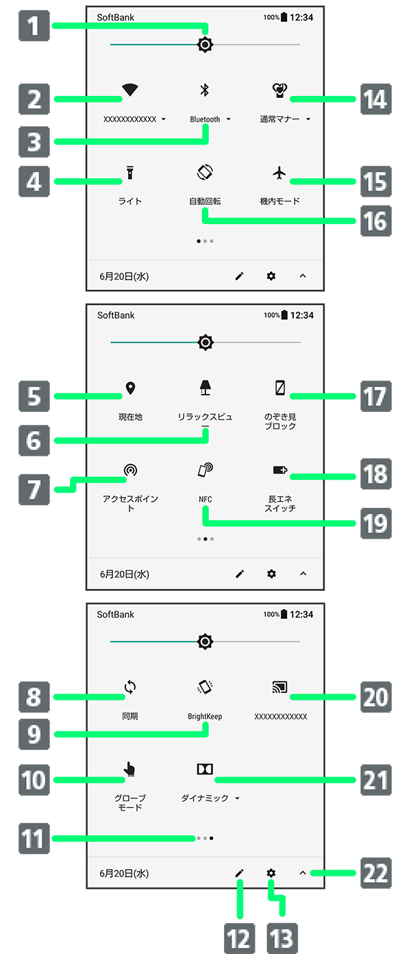 - 機能ボタンの表示領域を左右にフリックすると、シートを切り替えることができます。
