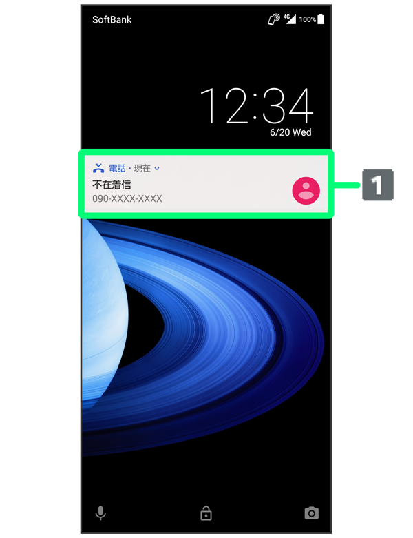 着信中に電話を受けられなかったときは、ロック画面に通知が表示されます。