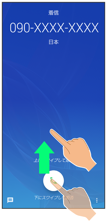 が表示されます。ステータスバーを下にドラッグして通知パネルを開いたあと、通知をタップしてください。通知の下部に/と表示されているときは、タップして電話を発信/SMSを送信することができます。