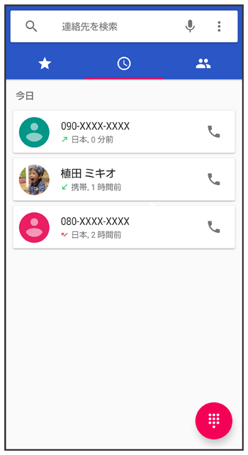 通話履歴一覧画面で確認する相手の名前/電話番号をタップ履歴詳細画面が表示されます。